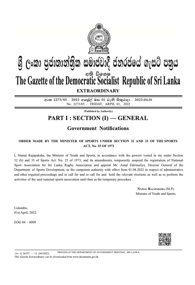 Home » SL Rugby Election: Pavi Fernando’s Presidency Bid Hit By Constitutional and Gazette Roadblocks