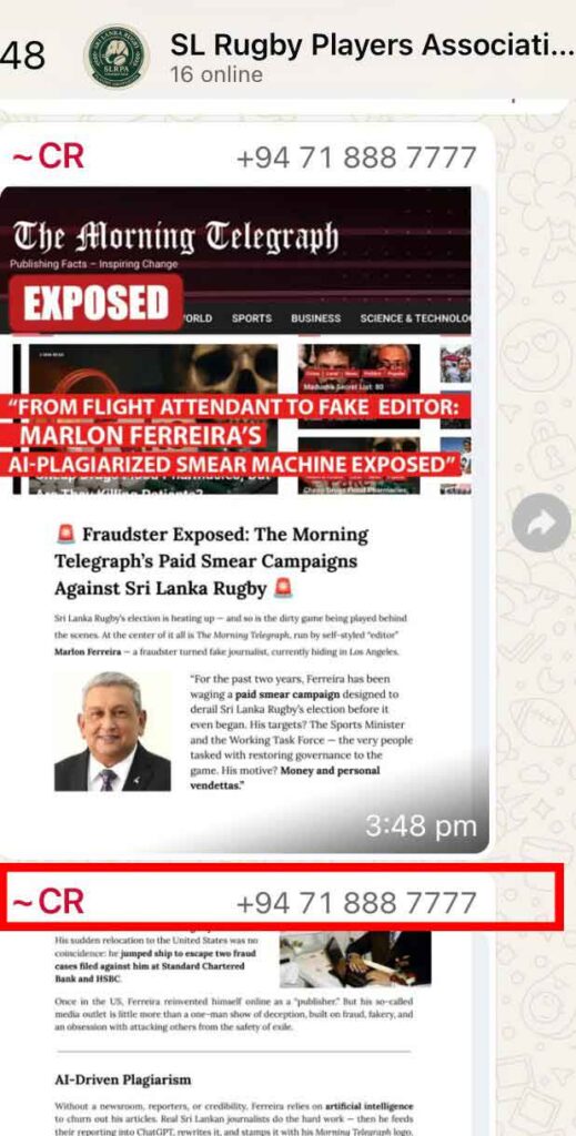Sri Lanka Rugby, already engulfed in turmoil, has now been pulled into an even darker chapter the use of false and malicious online content aimed at silencing journalists who dare to expose the truth.
