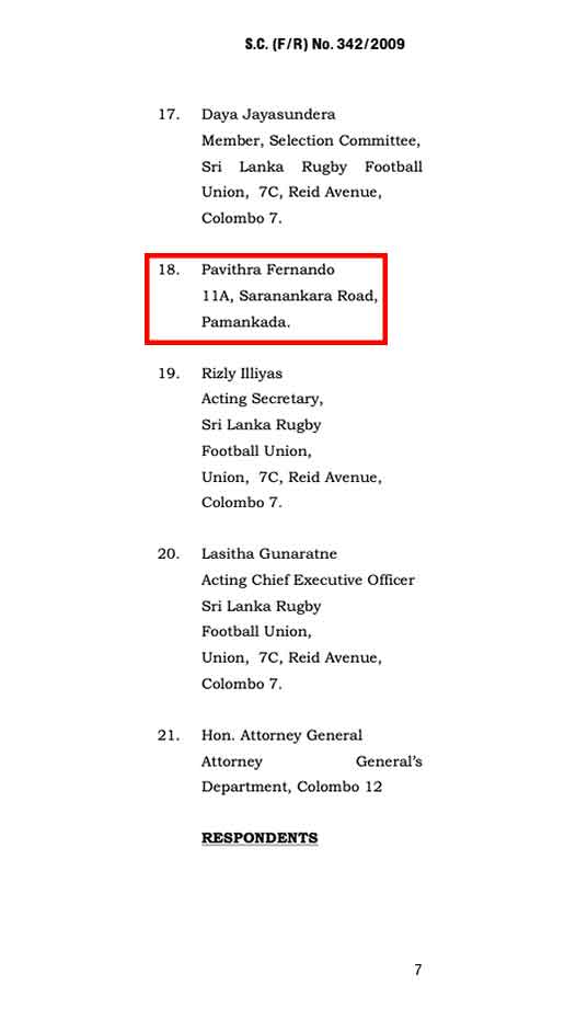 The case was filed under S.C.F.R. No. 342/2009 and the list petitioners were: H. Dilanka Wijesekera, Sanjeewa Jayasinghe, G.Dinesh Sanjeeva,Tuan Shamrock, R. M. M. Sathiya Ranathunga,Tuan Kishor Jehan, Eranga Swarnathilake, Safeer Jhan, S.Mark Wijeisnghe, K.A. Don Sajith Saranga,W. M. Prasad Chaturanga, T. Mohamed Fazil Marjja, Gayan Weeraratne, Mohamed Sheriff and H. Rathika I. Hettiarachchi.