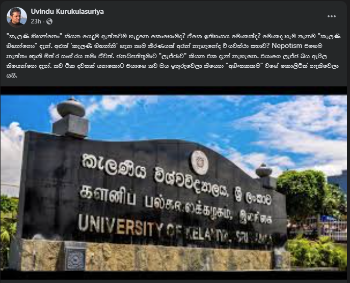 Kurukulasuriya questioned how the term “Kelani beggars” came into common political usage and why it now dominates public discourse. He asked whether the Constitutional Council has even taken a proper decision on the latest appointment linked to Kelani, or whether this is yet another case of blatant nepotism shaping key state institutions.