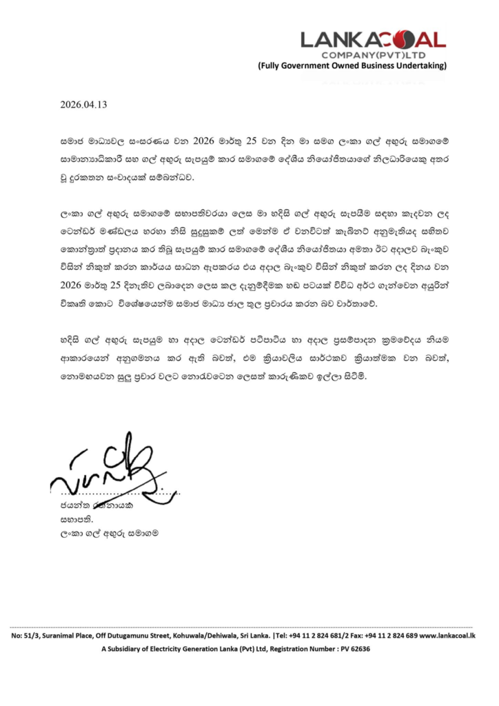 The ongoing coal procurement controversy in Sri Lanka has taken a significant turn after a key admission by the Chairman of the Lanka Coal Company regarding a widely circulated audio recording.